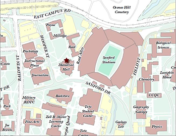 The Office of Student Conduct is located on the 2nd floor of Memorial Hall. It is the white building located next to Sanford Stadium. When visiting our office, check in at room 247 located in the hallway between the Hooper Street and Reed Alley entrances to Memorial Hall. See the map of Student Conduct for details.